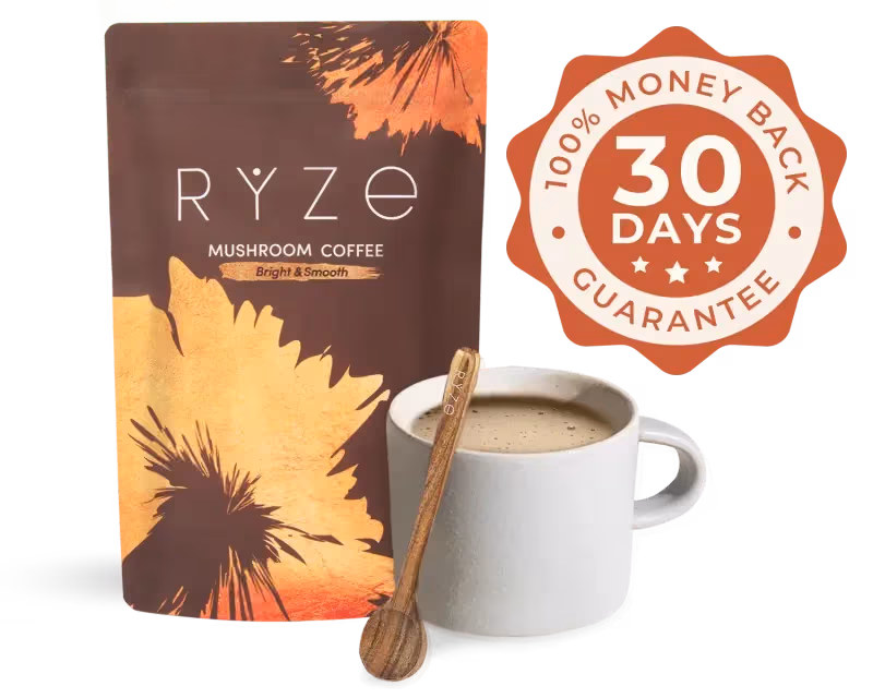 Una taza de café RYZE contiene unos 48mg de cafeína, menos de la mitad de la cantidad que contiene una taza de café normal. Para mantener la energía de forma natural y deshacerse de los nervios que causa el café común, utilizamos Cordyceps, que brinda energía en vez de grandes cantidades de cafeína.