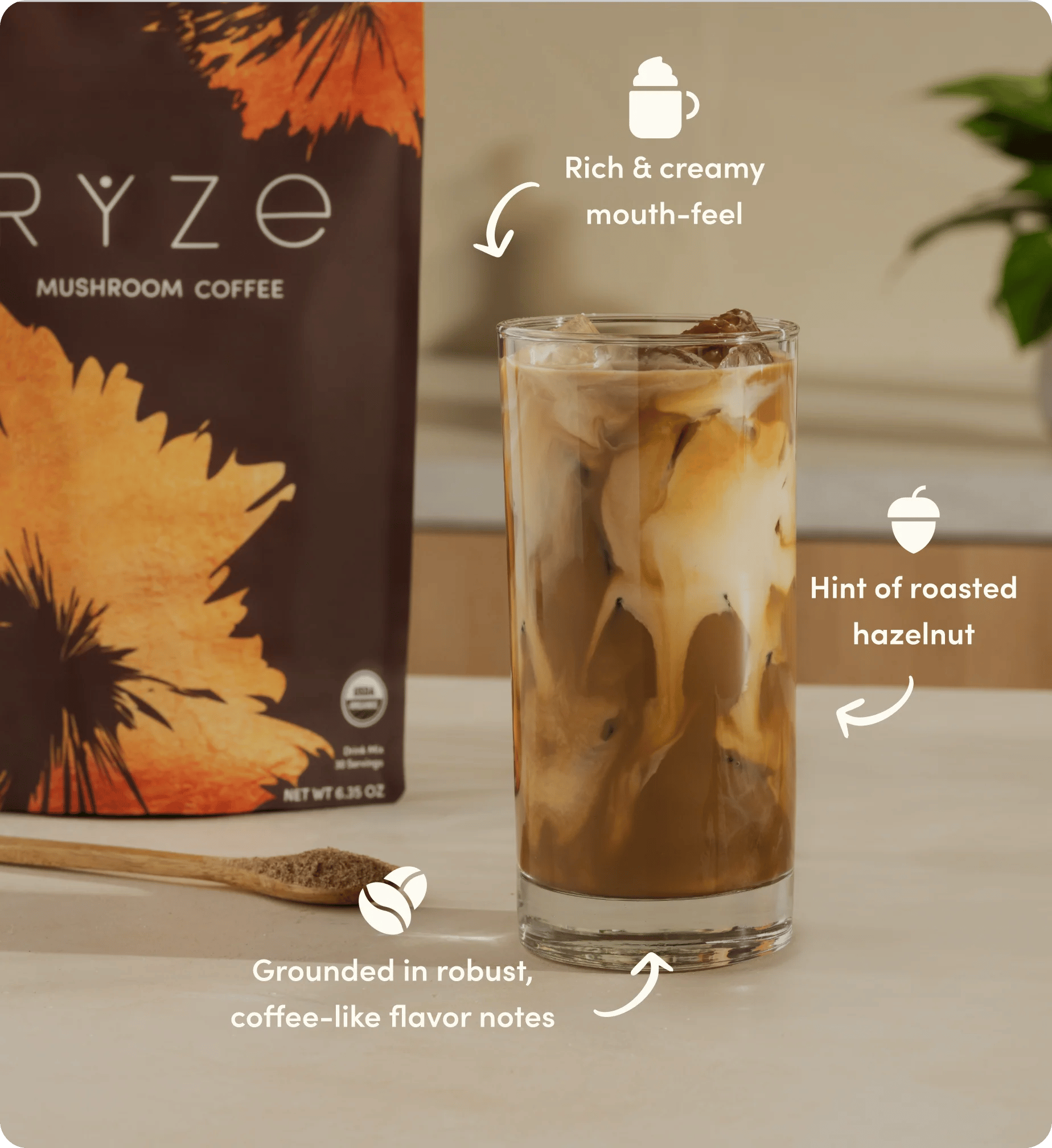 RYZE is a ready to drink beverage. Stir it into 8-10 oz. of hot water or use a mini-frother to make it extra foamy and frothy! Nut and non-dairy milks blend very nicely for an even creamier texture. Add natural sweeteners to taste.
