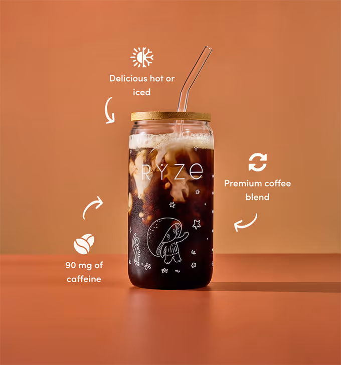 Yes! RYZE Dark Roast is better coffee, powered by mushrooms. After carefully roasting and brewing our premium Arabica and Robusta beans, our coffee is spray-dried into a pure instant powder before being added to our formula. It yields 90 mg of caffeine per cup of RYZE.