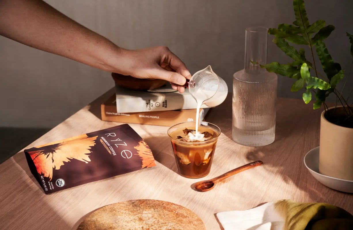RYZE is a ready to drink beverage. Stir it into 8-10 oz. of hot water or use a mini-frother to make it extra foamy and frothy! Nut and non-dairy milks blend very nicely for an even creamier texture. Add natural sweeteners to taste.